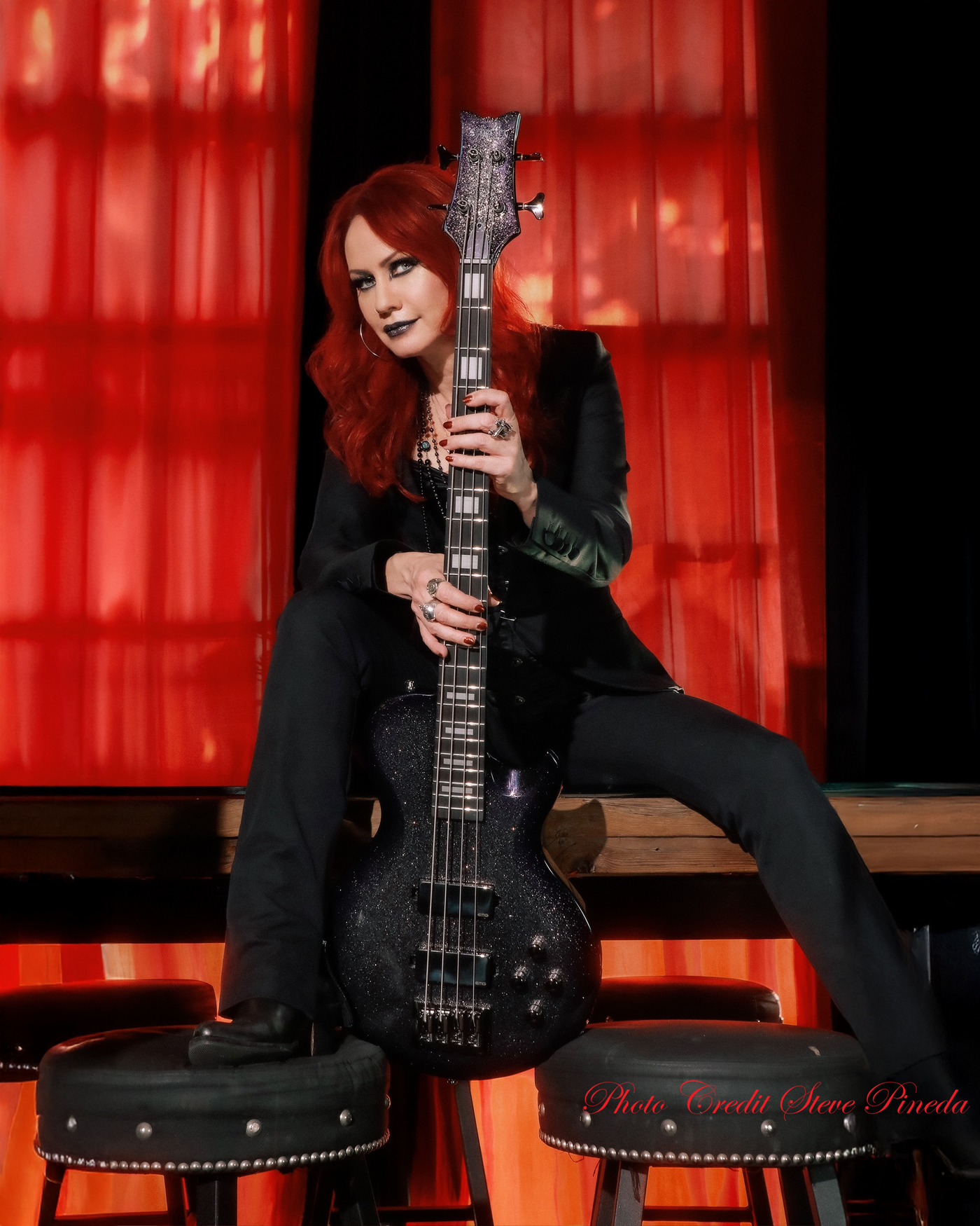 A true gear enthusiast and hands-on creator, Nadja has released multiple signature bass models, including her Schecter NP-4 “Dark Star” and NP-4 “Red Syren.” Her creative collaborations extend beyond instruments — including signature guitar/bass straps with Richter, exclusive hoodie merchandise with Ghost Circus, and a growing line of original merchandise designs available through her own brand and website.
